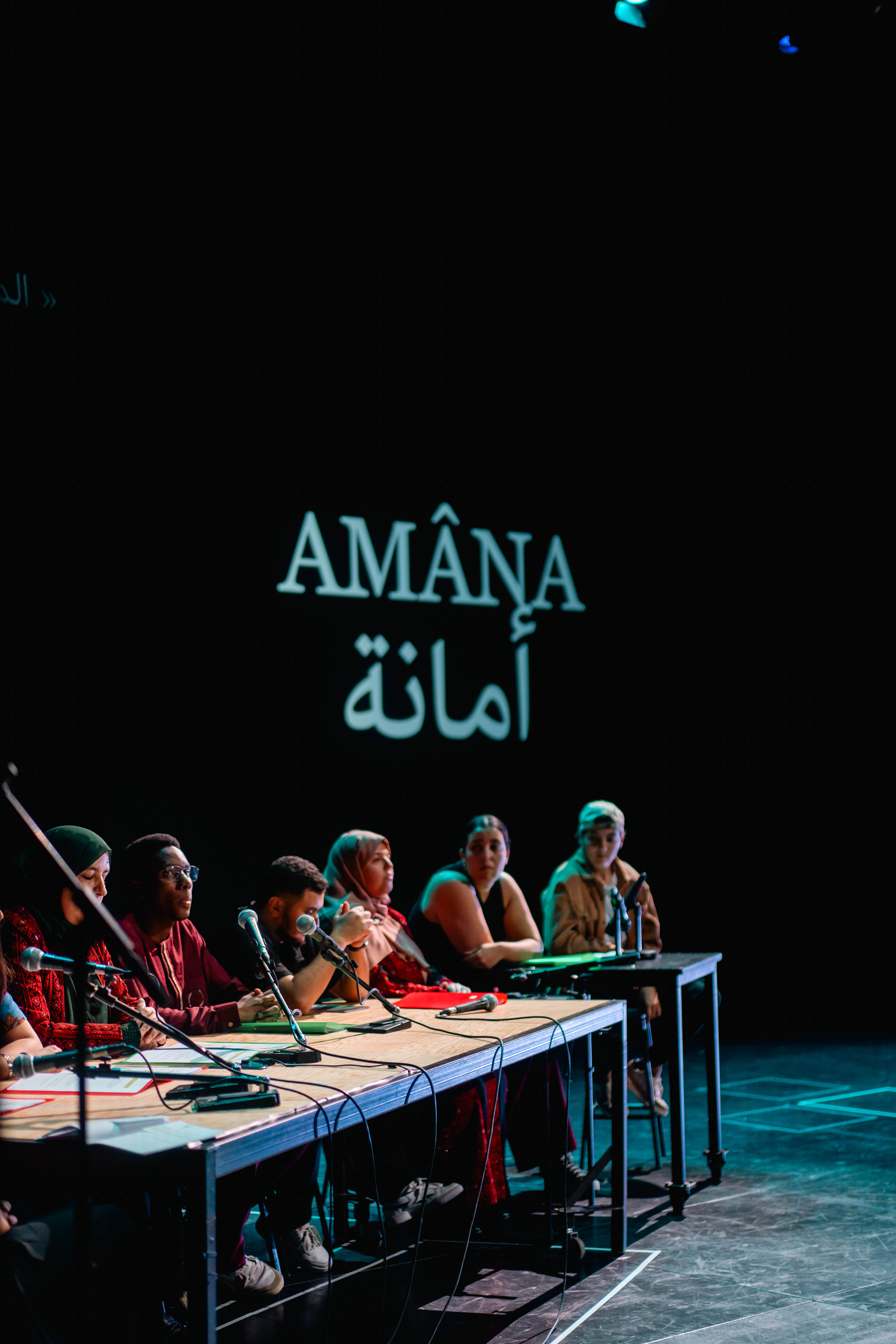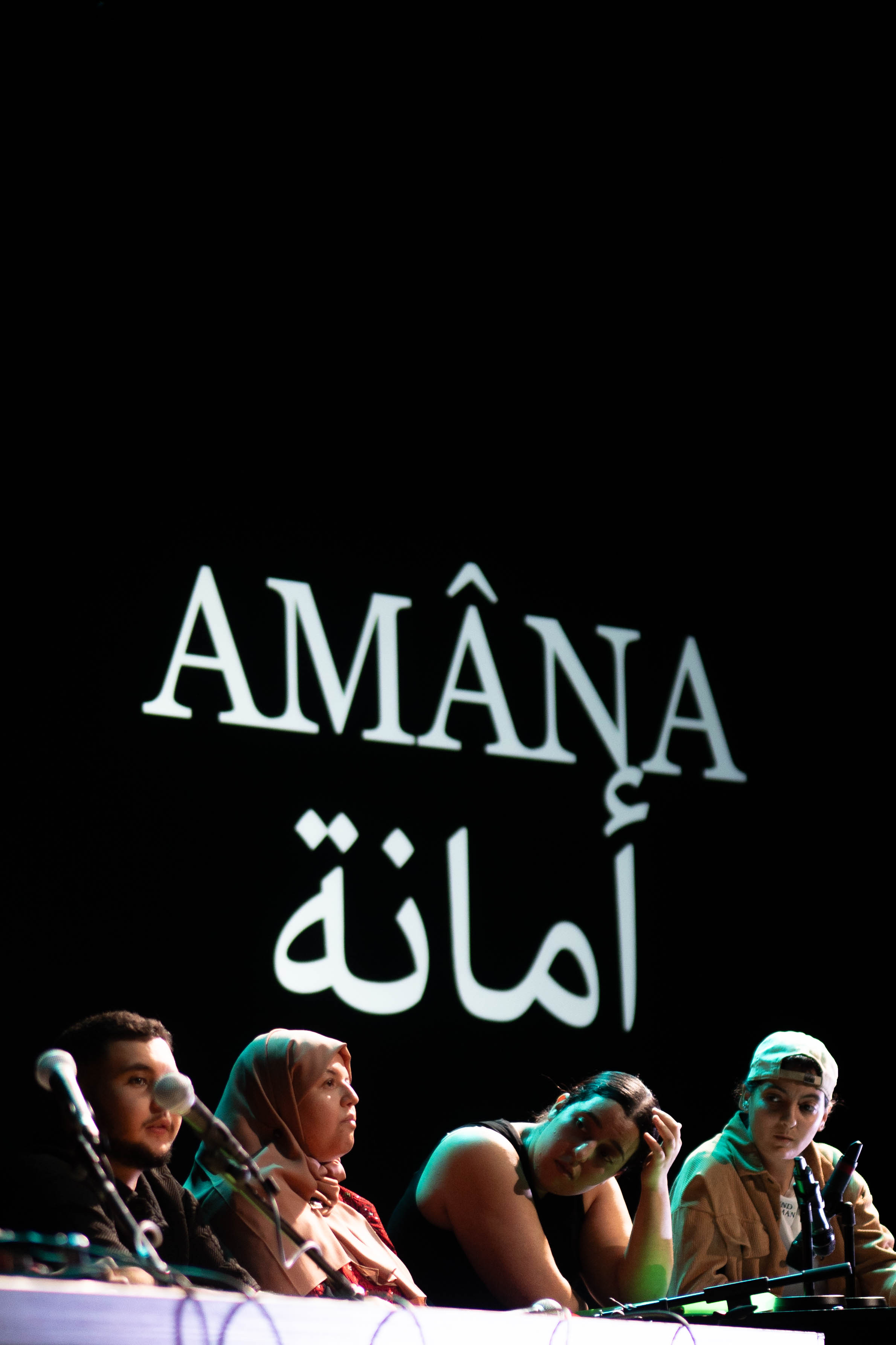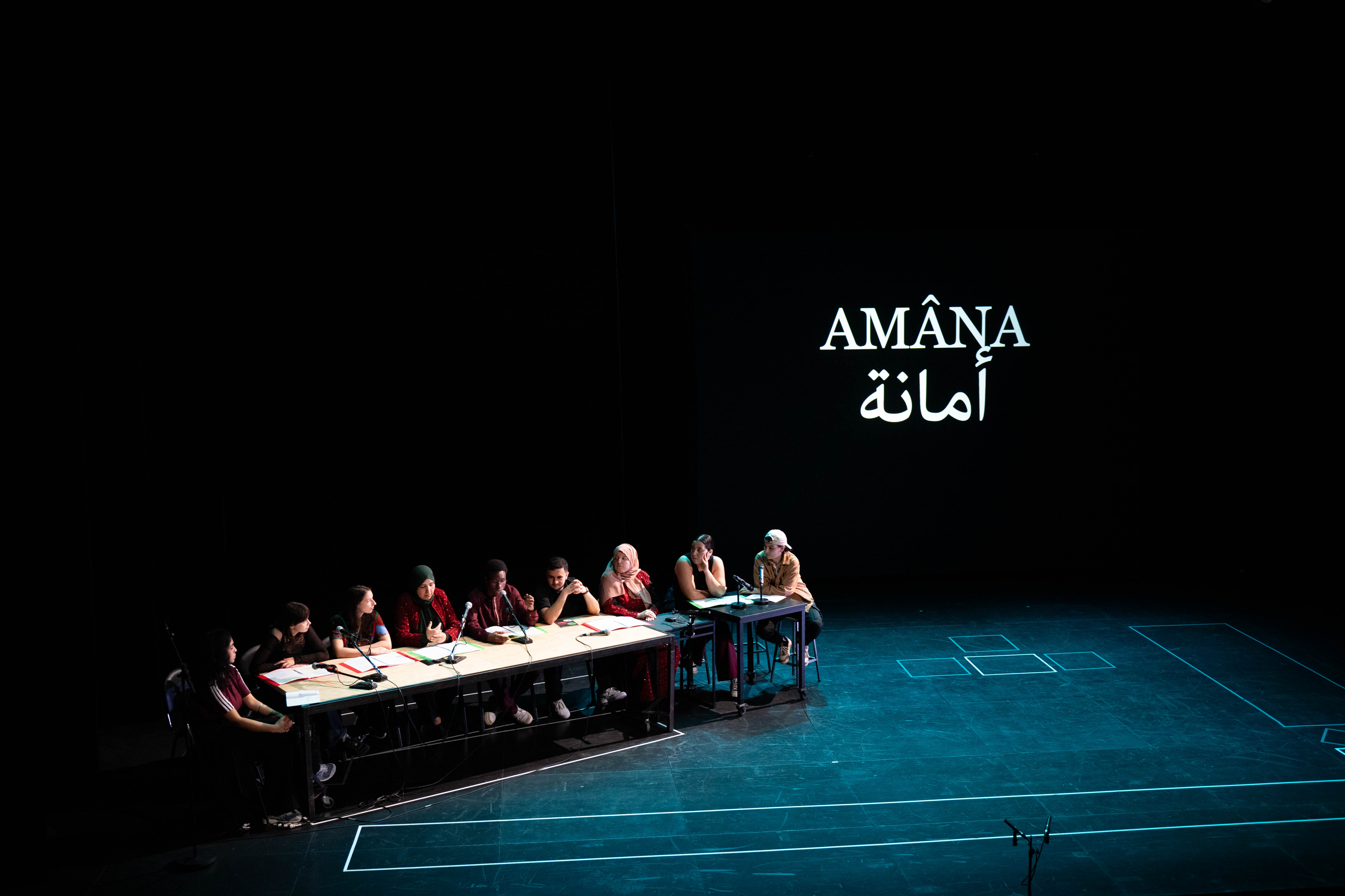 « Amâna est une pièce portée par des jeunes amateur·ices ; elle est l’aboutissement d’une démarche plus large et s’inscrit dans une collaboration au long cours entre les Ambassadeurs d’expression citoyenne, la compagnie Al Rowwad, basée en Cisjordanie et dirigée par le metteur en scène Abdel Fattah Abu Srour, et le Varia.